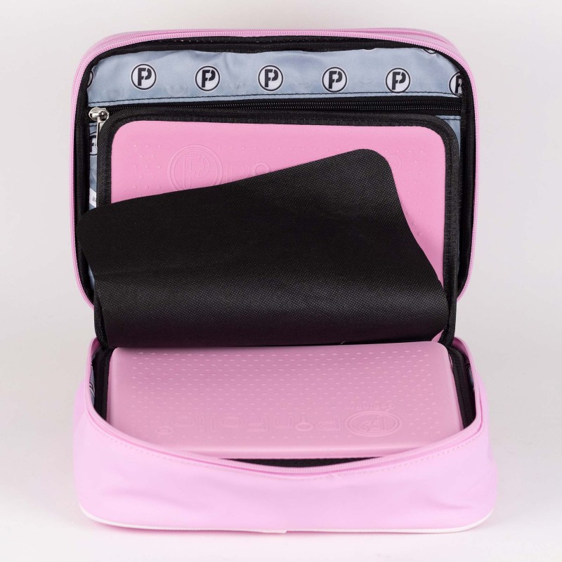 You'll find FIVE double sided pages inside the PinFolio Show XL giving you ten surfaces for pins with each page separated by a protective fabric sheet. Not only that, there's the brand new mid-sized board in the show window at the front, available in a choice of colours, to show of your favourite pins as you carry your bag around.
