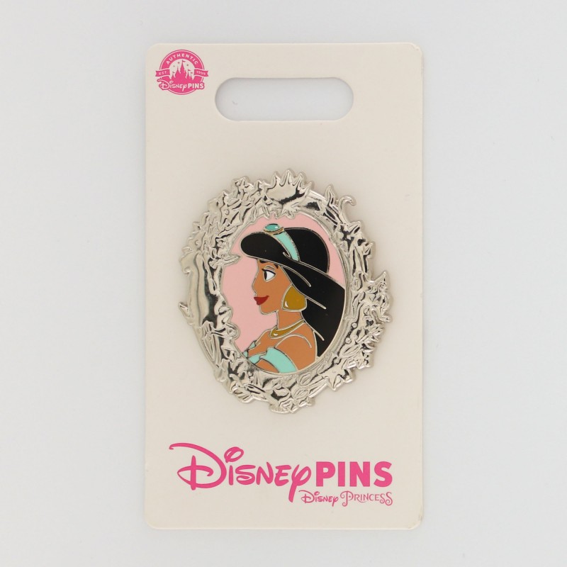 Disney Parks pin. Features Jasmine's side profile. The frame is silver.