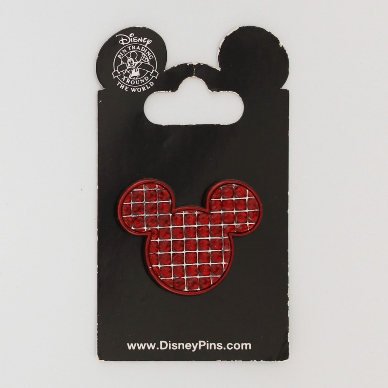 Disney Parks pin. Features Mickey icon with red jewels.