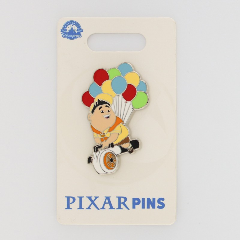 Disney Parks pin. Features Russell sitting on a Leaf Blower and flying with Balloons.