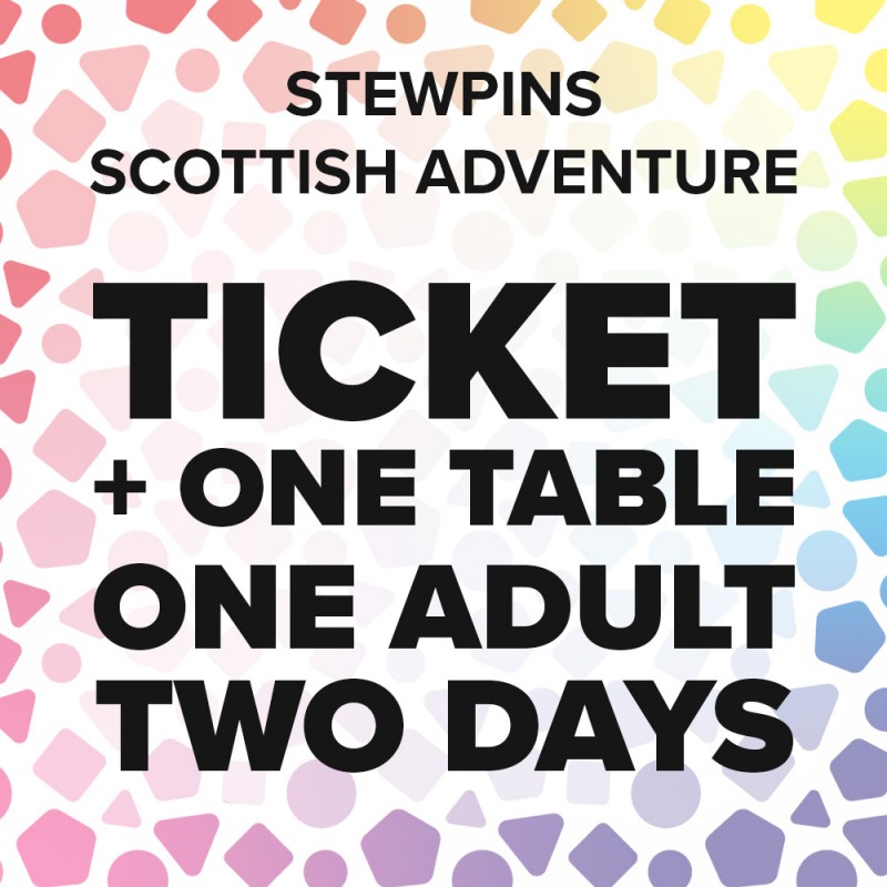 - Product Code: Stewpins Event - Two-Days with Table and One Adult