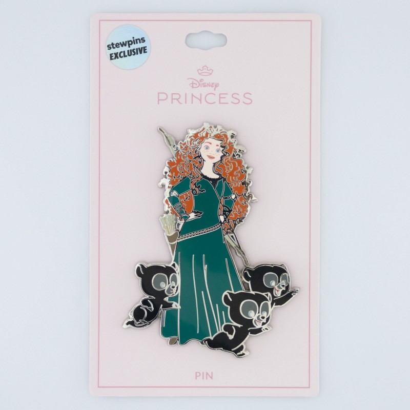 This beautiful pin features Merida and her three brothers in bear form, Harris, Hubert, and Hamish from Brave. The pin is part of our Princesses and Pals series, exclusive to Stewpins.