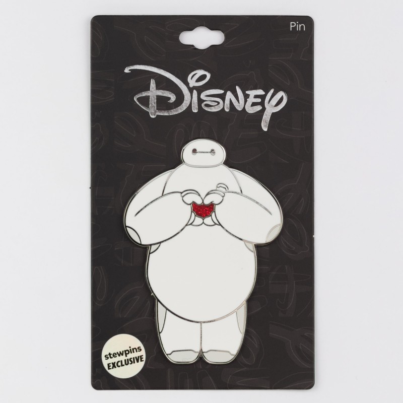 This beautiful pin features Baymax from Big Hero Six. This pin is to mark Valentine's Day 2026, exclusive to Stewpins. Baymax is featured creating a heart with his hands, filled with a glittery red heart.